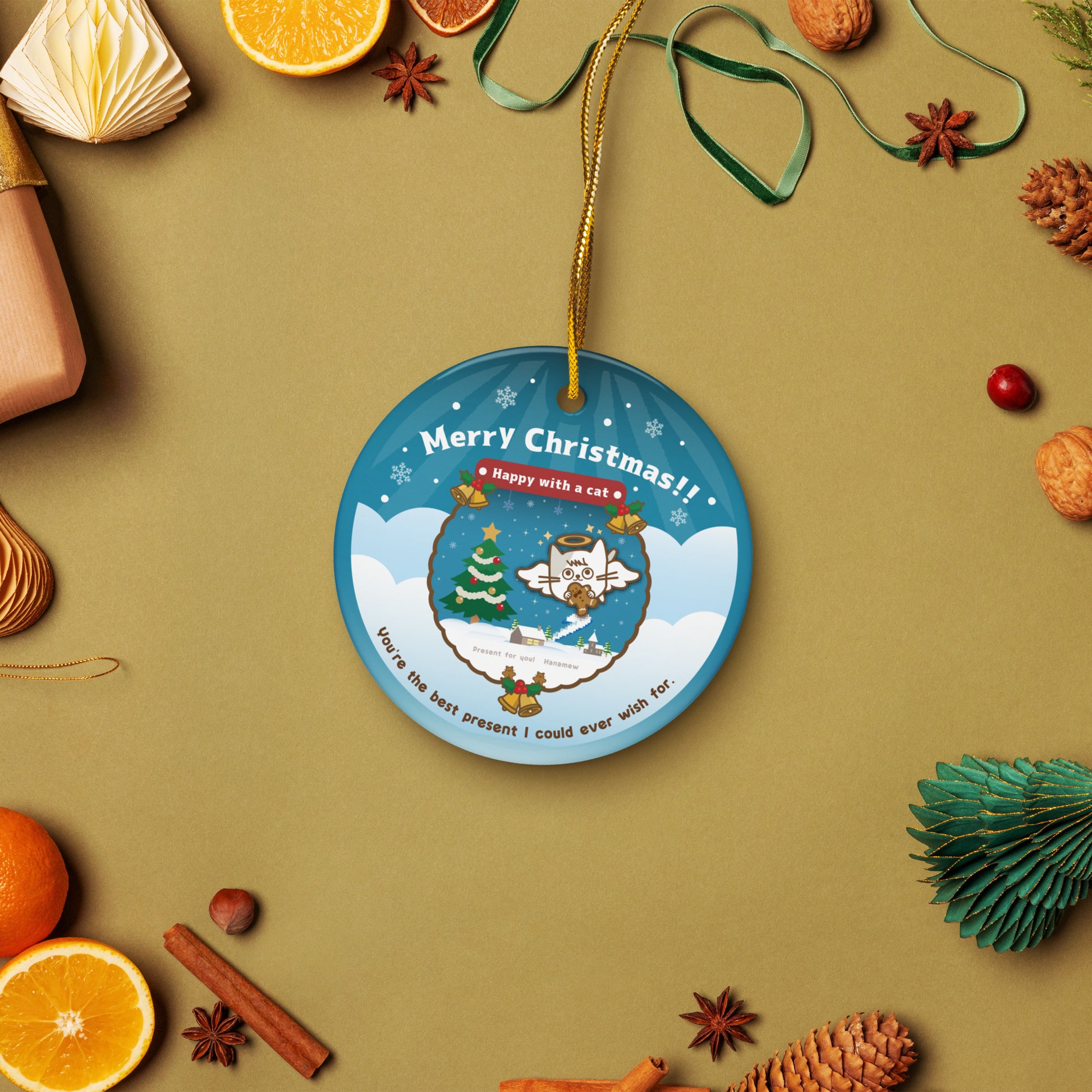 Merry Christmas!セラミックオーナメントVer5 / Happy with a cat...